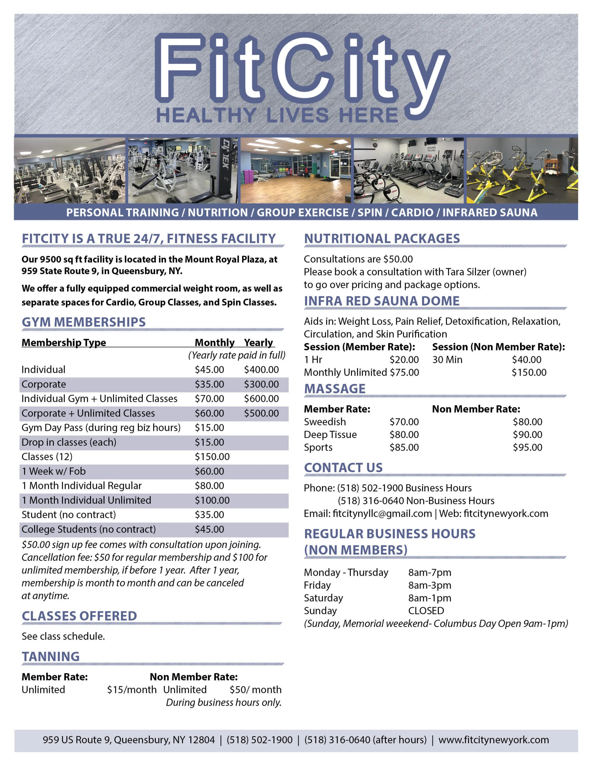 FitCity is a true 24/7 fitness facility. Our 9,500 sq. ft. facility is located in the Mount Royal Plaza, at 959 State Route 9, in Queensbury NY.